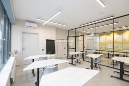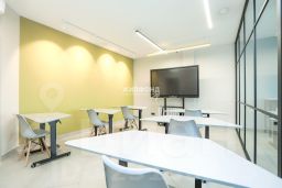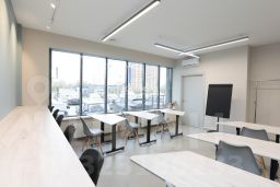 В помещении выполнен хороший ремонт, всё в идеальном состоянии. Состоит из пяти кабинетов от 14 до 50 м2, имеется зона ресепшен, кухонная зона с необходимой бытовой техникой, подсобные помещения, три сан.узла. Высота потолков в помещениях 3 метра. Не все кабинеты с окнами, в кабинетах установлены кондиционеры, приточно-вытяжная вентиляция. Установлена охранно-пожарная сигнализация, видео-наблюдение. Помещение имеет три входа. Возможна аренда с мебелью.