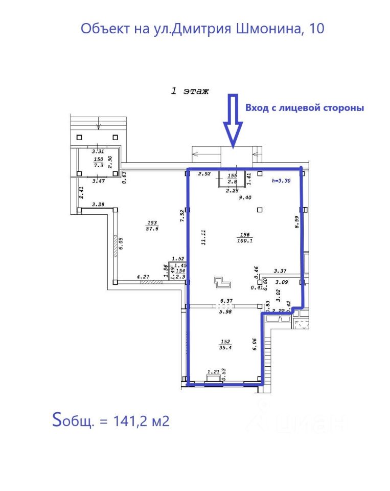 Аренда помещения свободного назначения на 1-м этаже площадью 141,2 м2