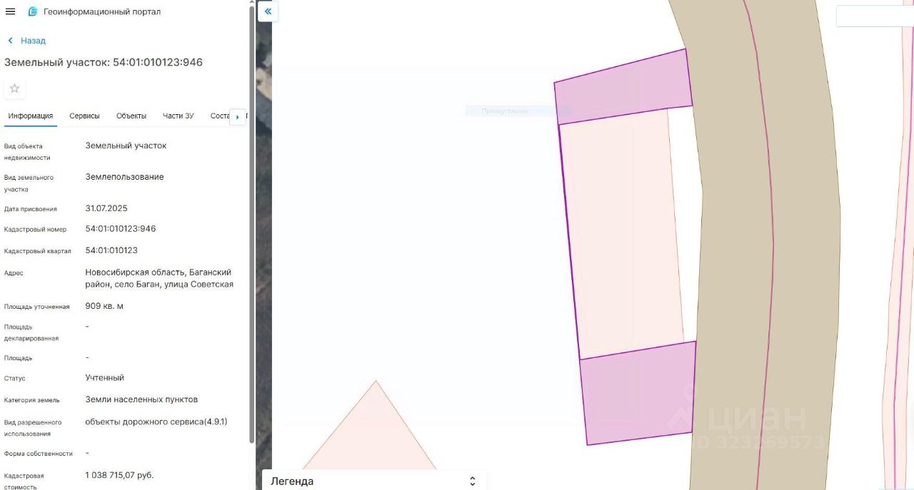 Земельный участок, государственная собственность на который не разграничена, категория земель: земли населённых пунктов с кадастровым номером 54:01:010123:946 площадью 909кв.м, вид разрешенного использования: объекты дорожного сервиса(4.9.1). Местоположение: Новосибирская область, р-н Баганский, село Баган, улица Советская.