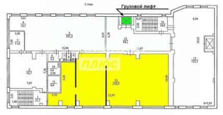 Грузовой лифт 0,5т рядом с помещением;