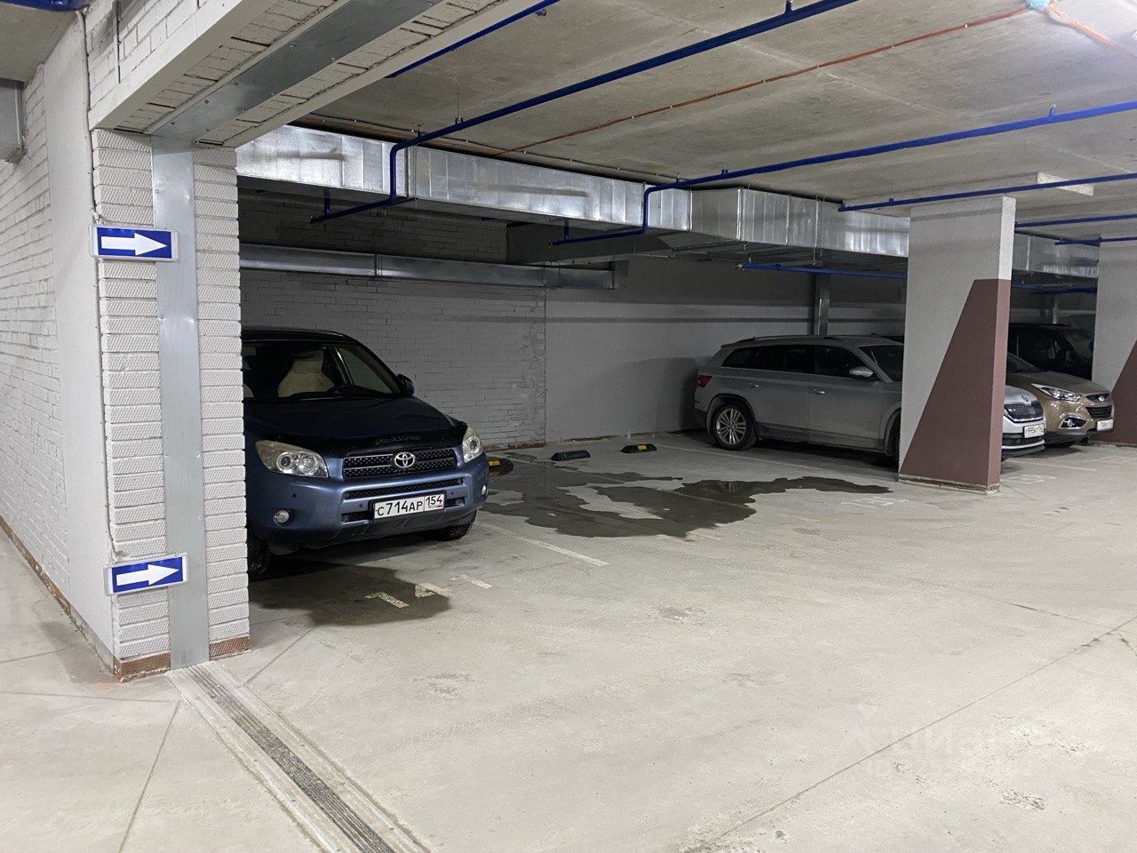 -2 этаж, недалеко от лифта и въезда в паркинг. Рядом колонна, отделяющая от соседнего машино-места. Удобный въезд и выезд