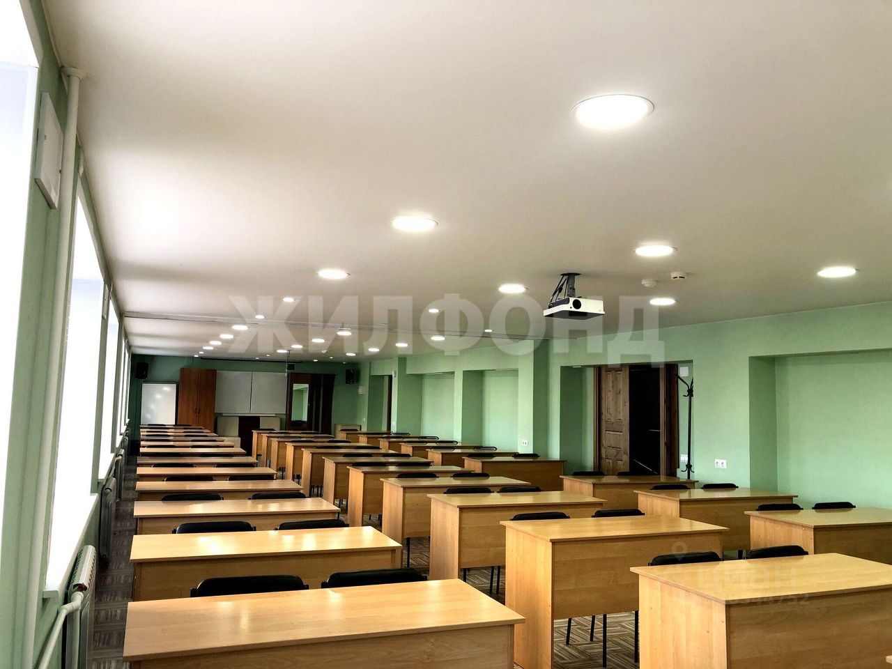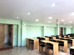 В помещении шесть окон, на всех окнах установлены жалюзи. Два входа. Свободное пользование местами общего пользования, с ухоженной зоной зимнего сада. В здании расположена столовая, возможна организация питания. Выполнен хороший ремонт. Установлена охранно-пожарная сигнализация и видео-наблюдение, приточно-вытяжная вентиляция, интернет, wi-fi.