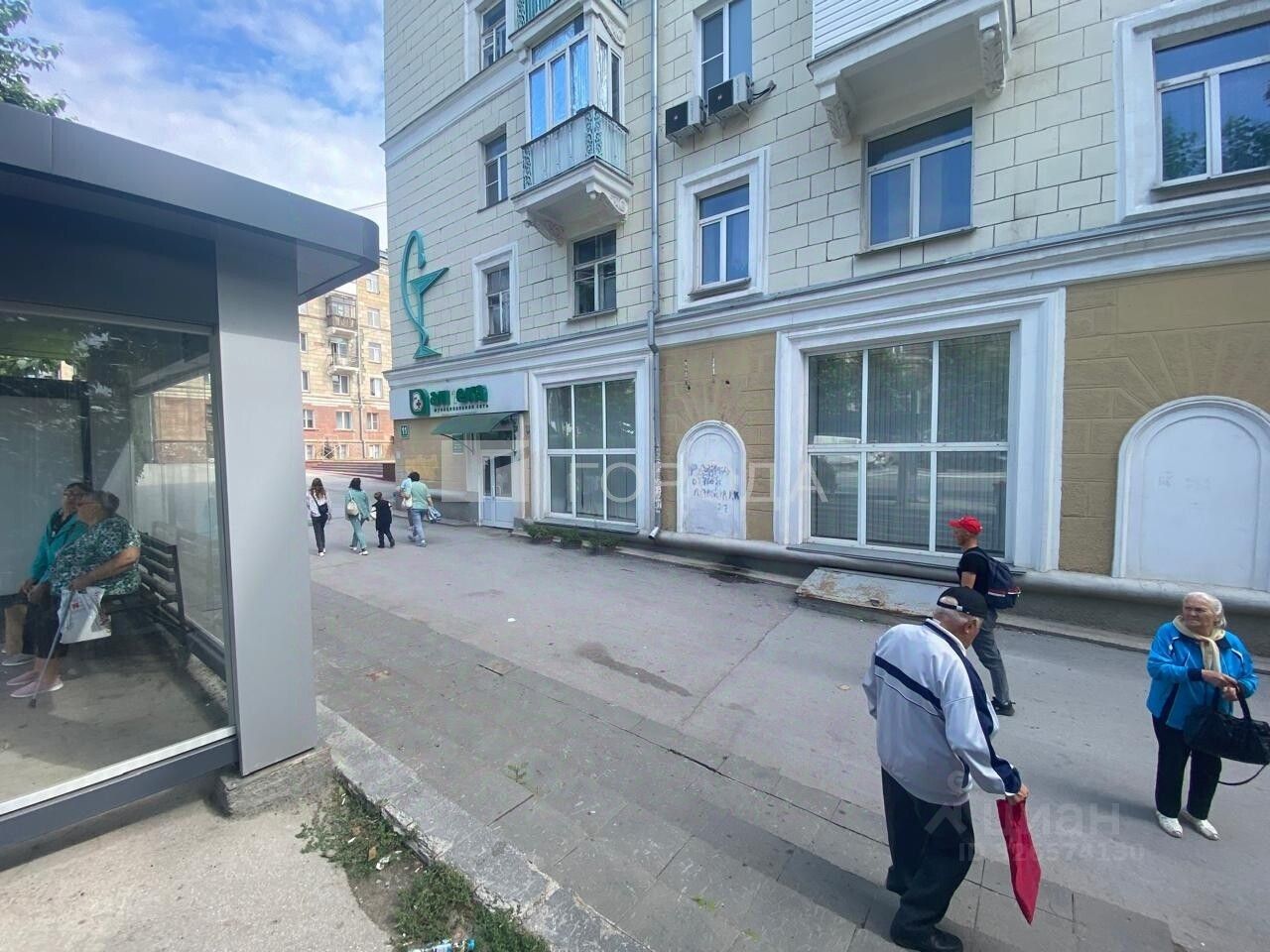 На первой линии, центральной магистрали, напротив остановки общественного транспорта с отличным пешеходным и автомобильным трафиком.