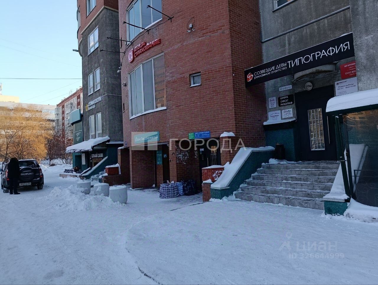 В здании банк Левобережный, нотариус, рядом магазин Лента.