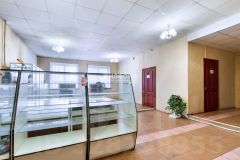 • на первом этаже здания центральный вход, большой холл (выставочный зал, возможно торговая площадь), шесть кабинетов, с/узел. Площадь этажа 194, 6 кв.м.