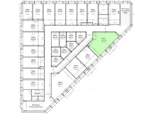 Офис 34.37 м2 на 2 этаже торгово-офисного здания. На плане обозначен офис 216