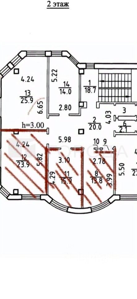 Сдаётся офис площадью 53,6 кв. м на втором этаже трёхэтажного здания по адресу: улица Жуковского, 107/1.