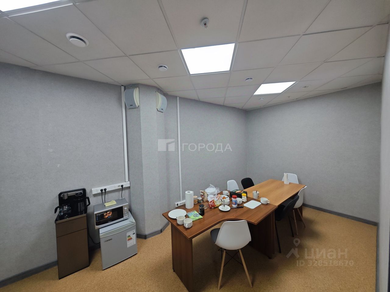 Большой холл, три изолированных кабинета, комната приема пищи, свой санузел.