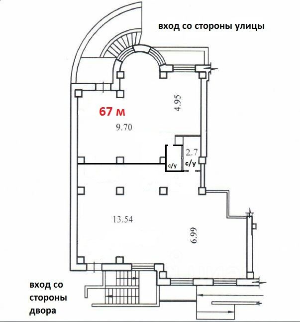 Помещение свободного назначения на первом этаже жилого дома.