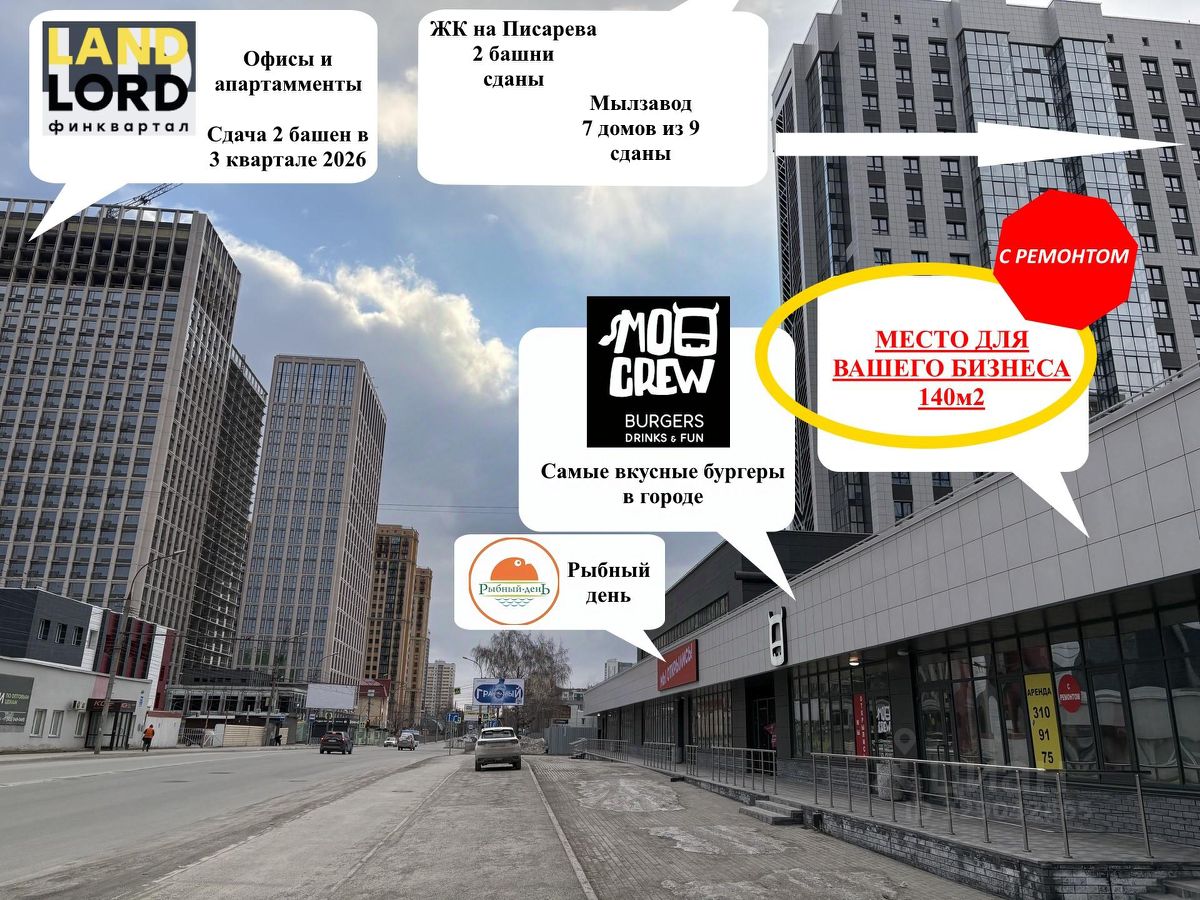 Предлагается в долгосрочную аренду торговое помещение 140м2 в ЖК на "Писарева" с ремонтом.