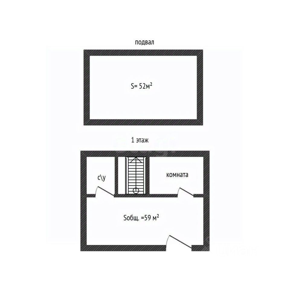 Помещение двухуровневое: на первом этаже расположен основной зал 52 кв.м., туалетная комната и подсобное помещение 6 кв.м. с окном; на цокольном уровне находится дополнительное помещение 59 кв.м., которое может служить технической зоной или большим складом.