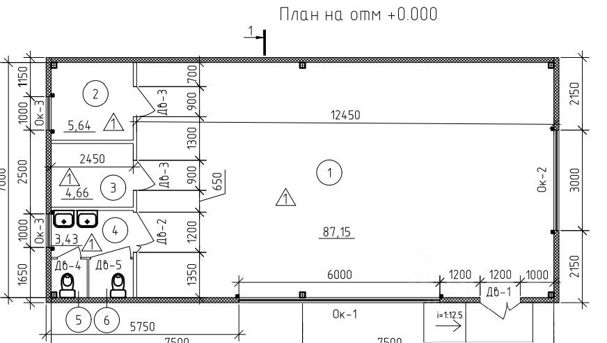 1. Вход в здание для покупателей/посетителейс лицевой стороны (северо-запад), через внутренний тамбур. Перед входом будет оборудовано крыльцо с навесом, 1 ступеней и пандусом для колясок.