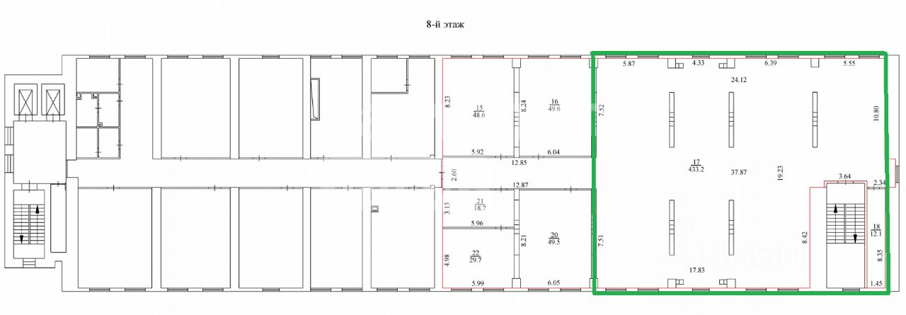 Арт. 131399280 Сдам офисное помещение общей площадью 524 м² на 8-м этаже БЦ "Комсомольcкий" в Железнодорожном районе.