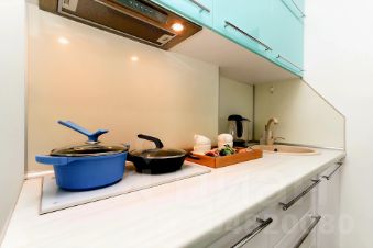 Кухня оборудована по последнему слову техники: индукционная плита, чайник и холодильник, духовой шкаф, микроволновая печь.