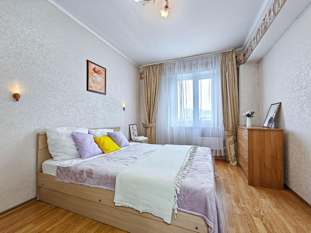 Трехкомнатная квартира с изолированными комнатами в очень удобном районе географическом центре города, недалеко от станций метро Октябрьская и Речной вокзал пешком 10-15 минут . Удобная транспортная развязка как на левый так и на правый берег. Рядом Михайловская набережная,сквер ГПТБ, Октябрьский рынок, множество кафе магазинов, закусочных на любой вкус и кошелек. Квартира комфортно вмещает до 8 человек. Всегда есть свободные места на уличной парковке .Предоставляется выглаженное хлопковое постельное белье, белоснежные полотенца, чистые тапочки, гель для душа, шампунь., фен, утюг, сушилка. Кухня полностью оборудована посудой и техникой, включая посудомоечную машину. Спальные места: