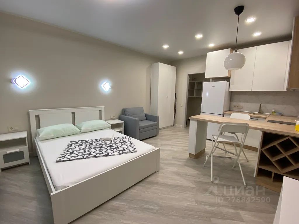 1 комнатная квартира-студия расположена на 13 этаже 25-ти этажного дома в центральном районе в городе новосибирске.