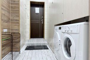 • Необходимая бытовая техника и посуда (стиральная машина+порошок и сушильная машина находятся в общем коридоре, чайник, микровол. печь, плита, холодильник, а также посуда, бокалы и штопор)