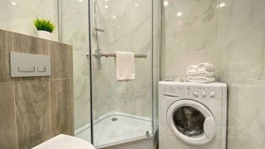 К услугам гостей в апартаментах есть двуспальная кровать-трансформер с ортопедическим матрасом, раскладное кресло, посуда для приготовления пищи и сервировки стола, Smart ТV, Wi-Fi, постельное бельё и полотенца. А также туалетно-косметические принадлежности — гель и мыло, порошок и шампунь. Для удобства гостей здесь также есть фен, утюг, гладильная доска, стиральная машина, сушилка для белья. Апартаменты размещают до 4 гостей. Для гостей с детьми до 1 года по запросу за дополнительную плату предоставляется детская кроватка, а также детская площадка во дворе.