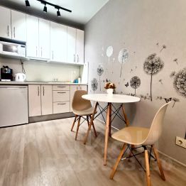 В квартире выполнен качественный евроремонт, вмещает до 4 человек. Удобная кровать с ортопедическим матрацем, диван двуспальный, красивая кухня и потрясающий душ не оставят вас равнодушными. Всегда есть горячая вода! (установлен бойлер).
