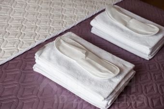 Свежие белоснежные постельные принадлежности и махровые полотенца