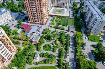 Территория жилого комплекса закрыта для посторонних и машин.