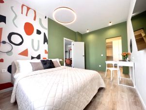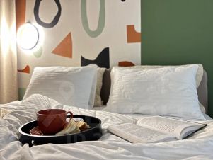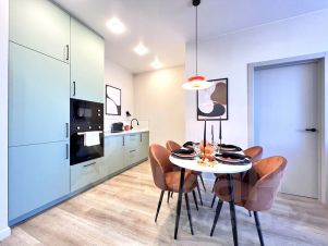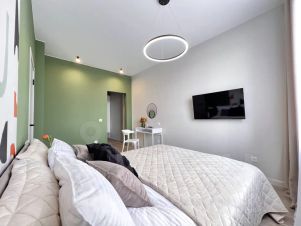 В апартаментах 2+2+2 спальных места (двуспальная кровать с ортопедическим матрасом + 2 двуспальных комфортных дивана) и она будет удобна для большой компании или дружной семьи. В дизайн-проекте квартиры использованы современные сочетания цветов и материалов, предусмотрены все моменты для вашего комфортного пребывания.