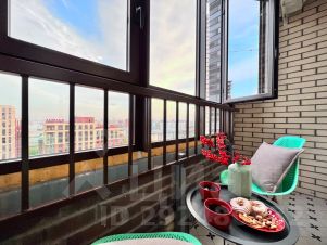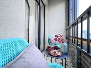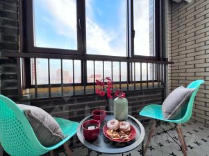 Большая застеклённая лоджия с завораживающим ночным видом на город оборудована мебелью для отдыха (не утеплена).