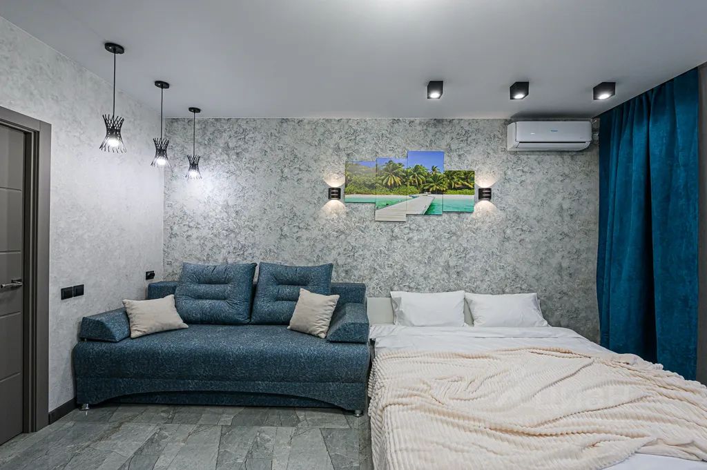 - Спальные места: 1 двуспальная кровать, 1 двуспальный диван
