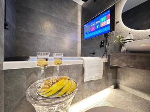 В квартире есть два огромных ТV с цифровым телевидением и голосовым поиском, Wi-Fi, вся бытовая техника (холодильник, микроволновая печь, варочная панель, чайник, капсульная кофемашина, стиральная машина, утюг, фен, гладильная доска и сушилка).