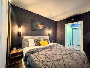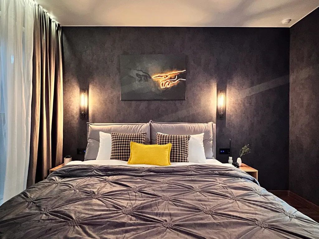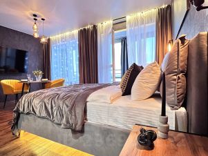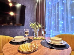 Огороженная территория с подземным паркингом*, собственный выход на Михайловскую набережную, парящий мост с панорамным завораживающим видом на реку и город, кровать king-size с высоким матрасом - все это делает данный проект по истине уникальным и комфортным для размещения пары, деловых путешественников или родителей с малышом.