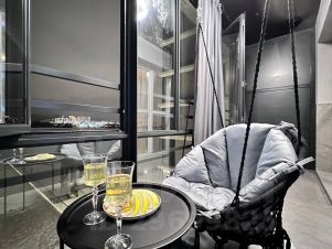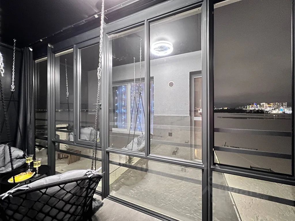 Шикарная зона отдыха на лоджии (не утеплена) с удобными креслами-качелями и панорамным остеклением подарит вам отличный вечер в любую погоду!