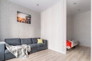Студия с новым ремонтом и мебелью находиться на 11 этаже . В квартире большая кровать, раскладной диван, бытовая техника ,телевизор с интернетом, свежее чистое бельё, полотенца и средства гигиены все для вашего комфортного проживания.