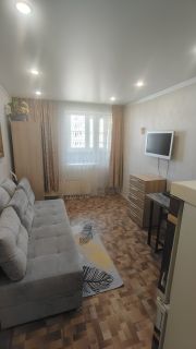 В квартире сделан косметический ремонт, поэтому она выглядит свежо и аккуратно. Здесь есть вся необходимая мебель. Из техники в вашем распоряжении холодильник, телевизор, микроволновка, духовой шкаф, мультиварка, индукционная плита, чайник, стиральная машина. Санузел совмещенный, с ванной. Есть балкон, где можно наслаждаться утренним кофе с видом на город.