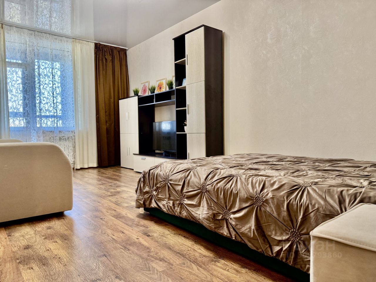 В квартире имеется все необходимое для комфортного проживания и отдыха. Кровать на 140 и двухспальный диван.