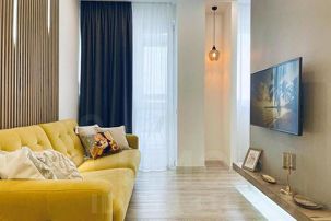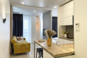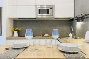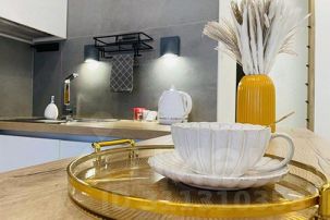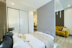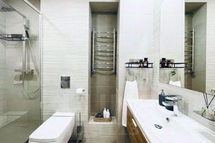 * техника: Smart-TV, безлимитный Wi-Fi, холодильник, СВЧ, варочная панель, вытяжка с поцветкой, электрический чайник, стиральная машина, водонагреватель, фен, утюг, кондиционер