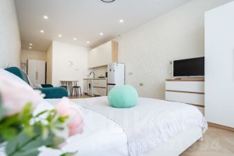 Сдается студия в новом доме комфорт класса. Последний 25 этаж, шикарный вид на город. В квартире новый ремонт, новая техника и мебель. Территория огорожена, бесплатная парковка и видеонаблюдение. В доме есть продуктовый магазин, озон, Валдберриз, медцентр.