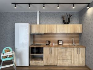 * техника: Smart-TV, безлимитный Wi-Fi, холодильник, СВЧ, варочная панель, вытяжка с посветкой, электрический чайник, стиральная машина, водонагреватель, фен, утюг, вентилятор в каждой комнате
