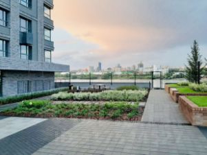 Под благоустройство и озеленение отведен внутренний двор, на котором расположены зоны для активных игр, занятий спортом и тихого отдыха.