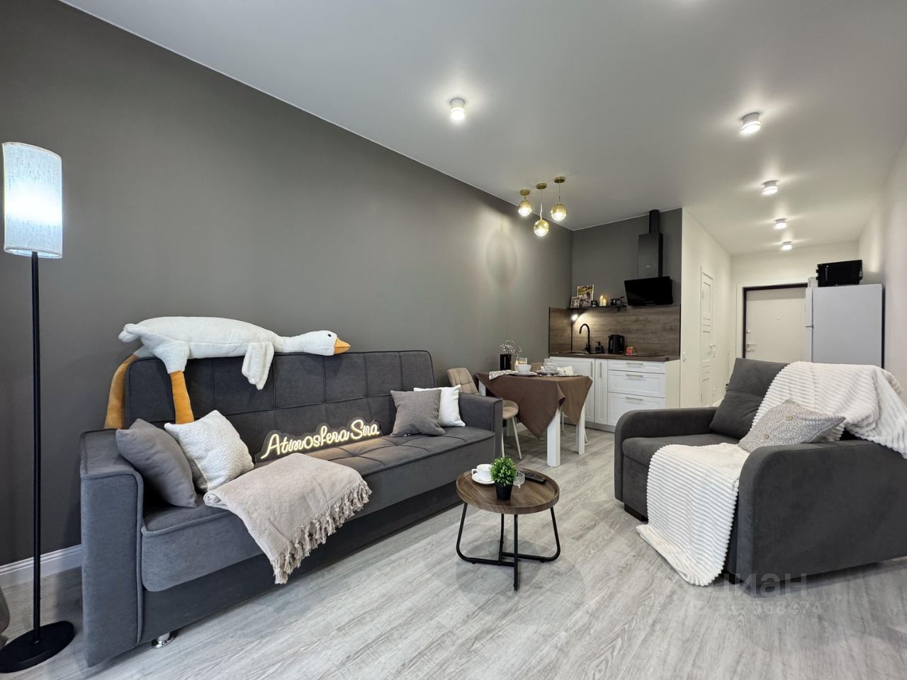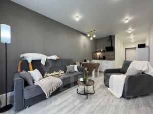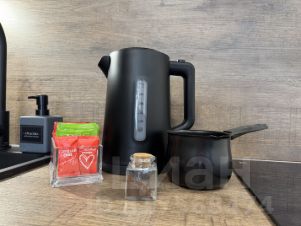 * техника: Smart-TV, безлимитный Wi-Fi, холодильник с морозильной камерой, СВЧ, варочная панель, вытяжка, электрический чайник, стиральная машина, фен, утюг, вентилятор