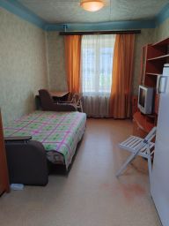 Есть все необходимое для комфортного проживания: Диван, стол, стулья, шкаф, горка, телевизор с приставкой. Отдельно выделенная кухонная зона (включает холодильник, стиральную машинку, микроволновку, эл.плиту, минидуховку, чайник). Вода заведена в комнату.