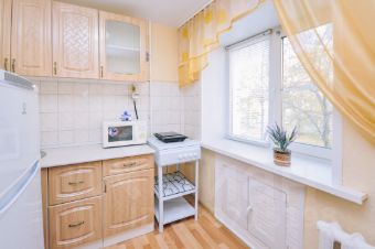 Мы предусмотрели в ней всё для вашего комфортного проживания: отличный ремонт, хорошая мебель, большая новая двуспальная кровать с ортопедическим матрасом, раскладной диван. ЖК телевизор, кухонный гарнитур со всеми обеденными принадлежностями на 3 человека и микроволновая печь, электрочайник, стиральная машина, фен, утюг, сушилка, гладильная доска, всегда свежее постельное белье и полотенца, туалетная бумага и прочие мелочи необходимые для проживания имеются.