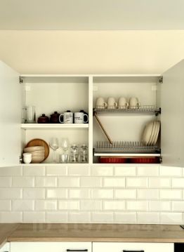 - Уютная зона кухни: варочная панель, духовой шкаф, холодильник, электрочайник, посуда и кухонные принадлежности