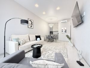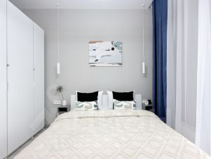 Квартира для 5 гостей: кровать 160см в спальне, раскладной диван и кресло в гостиной. Современный ремонт, зонированная кухня-гостиная, трех метровый потолок, увеличенные оконные проемы - все это делает квартиру светлой и благородной.