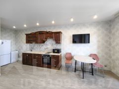 Эта квартира — идеальное сочетание стиля и комфорта, выполненная с использованием лучших материалов и свежего ремонта, который создает атмосферу уюта и современности. Просторная комната наполнена естественным светом, а качественные обои и отделка придают помещению элегантный вид. Квартира полностью укомплектована всей необходимой техникой, что позволит вам сразу же почувствовать себя как дома. У вас есть возможность наслаждаться комфортом современной жизни: холодильник, стиральная машина, плита и микроволновая печь — все это уже ждет вас.