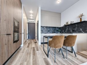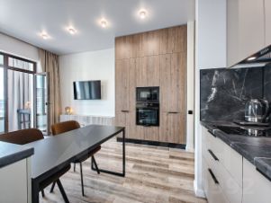 - Варочная панель, встроенные микроволновая печь, духовой шкаф, холодильник, посудомоечная машина.