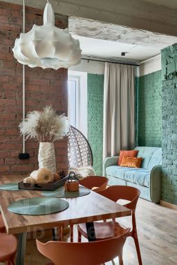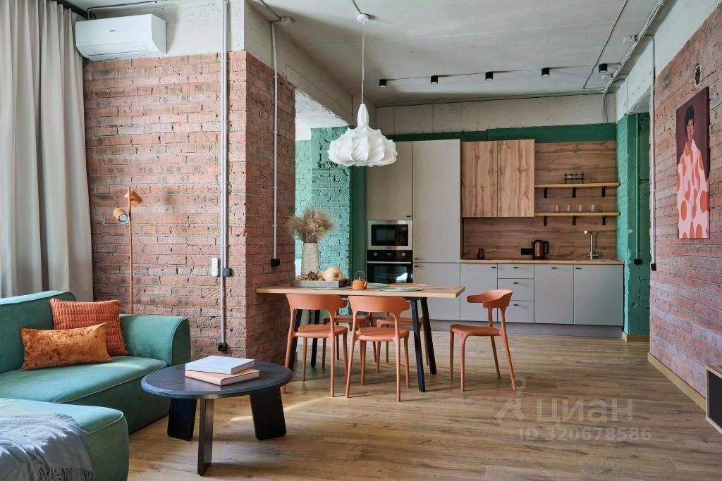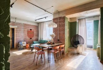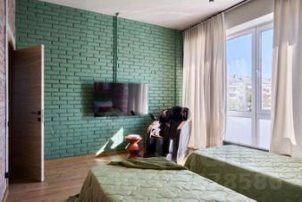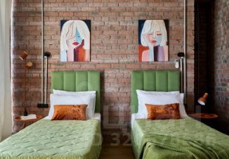 Апартаменты в стиле лофт с панорамными окнами рассчитаны на восемь человек. Имеются кровать с ортопедическим матрасом, две односпальные кровати, два двухместных дивана, массажное кресло. Установлены кондиционеры в каждой комнате, Smart TV, высокоскоростной Wi-Fi. Кухня оборудована микроволновой печью, варочной панелью, холодильником, электрочайником, комплектом посуды. Ванная комната оснащена душевой кабиной, предоставляются средства гигиены, полотенца, фен, утюг, гладильная доска, сушилка.