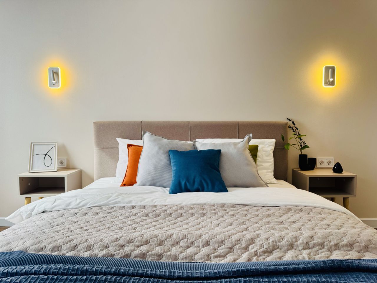 * мебель: две кровати queen-size 160х200, прикроватные тумбы, большой двуспальный диван-кровать, шкаф платяной / гардероб, обеденный стол, стулья