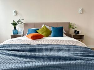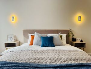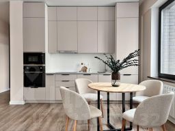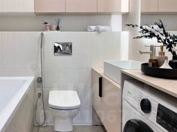 * техника: Smart-TV, безлимитный Wi-Fi, холодильник, СВЧ, варочная панель, вытяжка с посветкой, электрический чайник, посудомоечная машина, стиральная машина, водонагреватель, фен, утюг, кондиционер