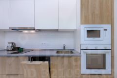 Полностью оборудованная кухня (варочная панель, микроволновка, холодильник, чайник, посуда)