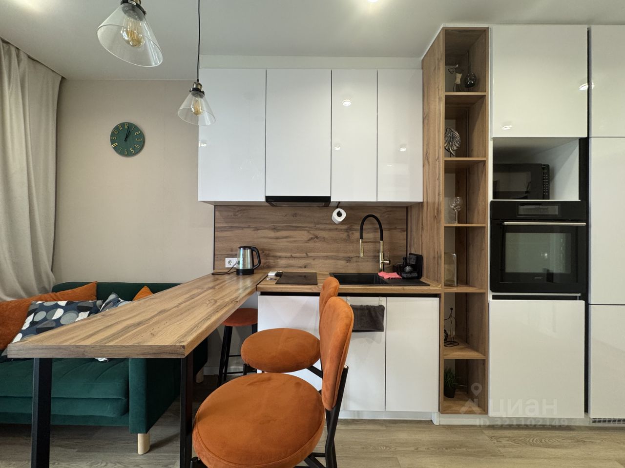 * техника: Smart-TV, безлимитный Wi-Fi, холодильник, СВЧ, варочная панель, духовка, электрический чайник, посудомоечная машина, стиральная машина, водонагреватель, фен, утюг, кондиционер